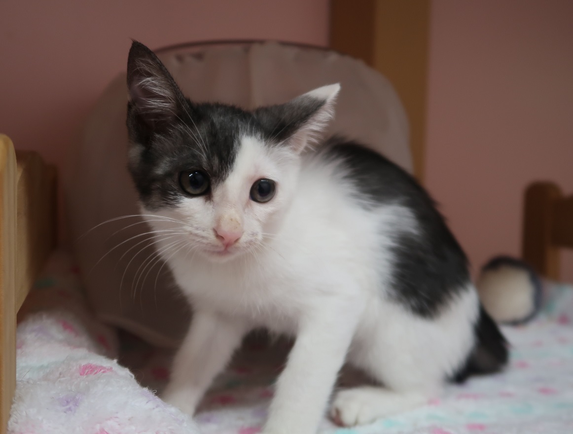 FeLV(-) FIV(-) 三種混合ワクチン接種済み ミルクボランティアさんに預かって育てていただいた猫です。福岡市獣医師会との共働により、譲渡に至るまで獣医師の健康管理を受けており、譲渡手続きもこちらの病院で行うことができます。 生後6か月になったら、福岡市獣医師会加盟病院で不妊手術を受けていただきます。(無料)